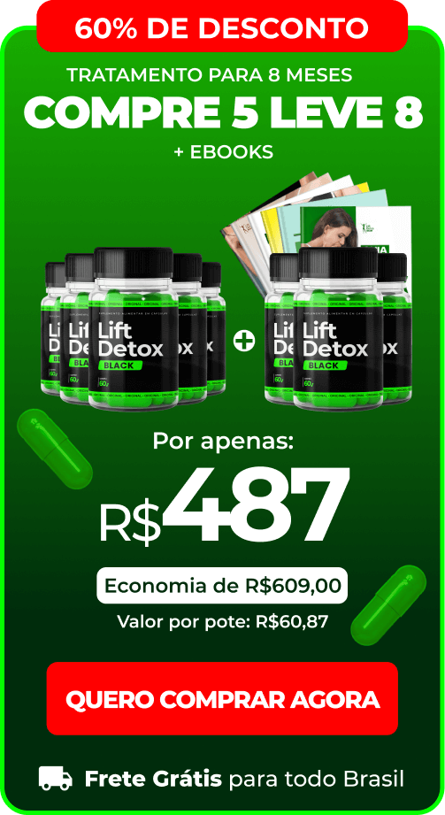 Não comercializamos o Lift Detox Black no Mercado Livre. A venda só pode ser realizada através deste Site Oficial e não nos responsabilizamos por compras realizadas em outros sites. Evite falsificações e riscos a sua saúde.